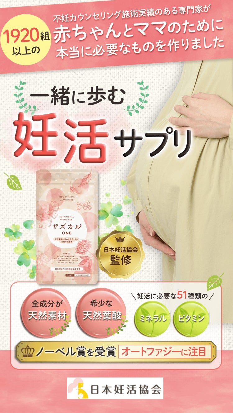 1,920組以上の不妊カウンセリング・施術実績を持つ専門家が、赤ちゃんとママのための妊活サポートサプリを開発しました。日本妊活協会監修、「サズカルONE」を2025年1月20日より発売します。