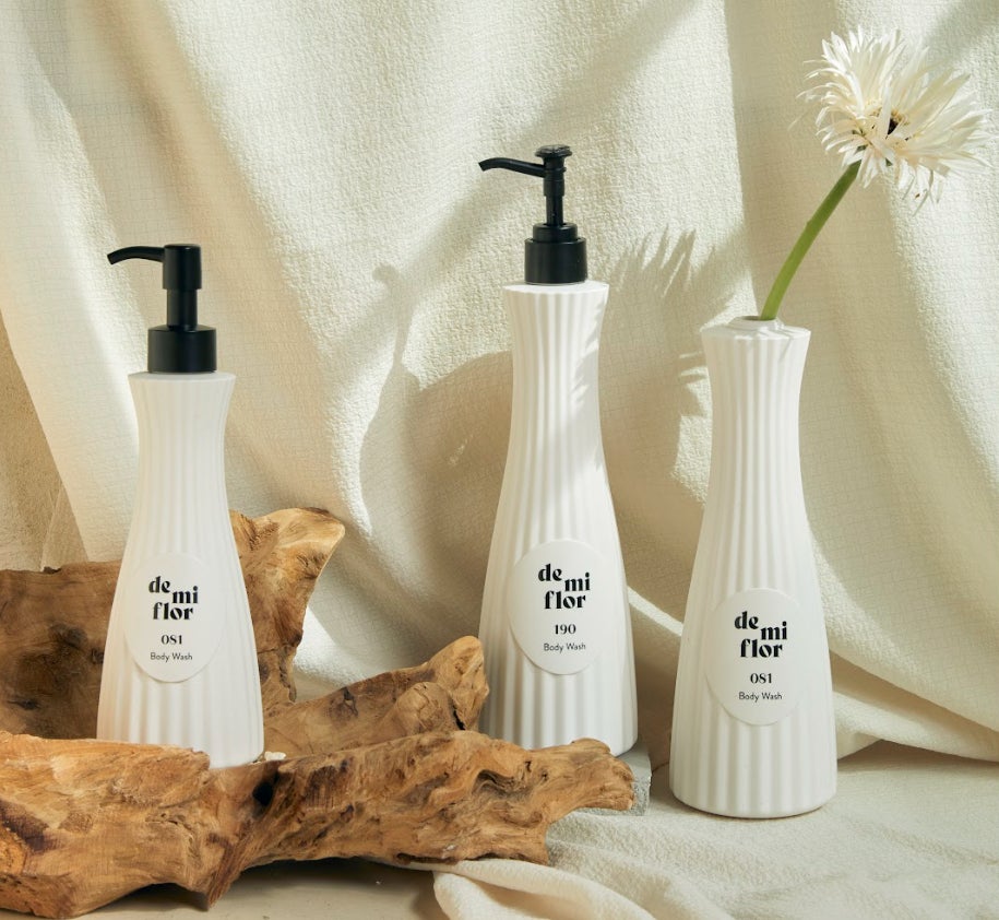 ブランド名「デミフロー(de mi flor)」はスペイン語で‘花のように美しい’という意味が込められています。 毎日を誠実で純粋な心で満たしていく自分への賛辞というスローガンを掲げ、植物由来の成分で肌を透明で清潔に整え、使用する空間の雰囲気まで香ばしくデザインする新しいコンセプトのボディケアを展開しています。