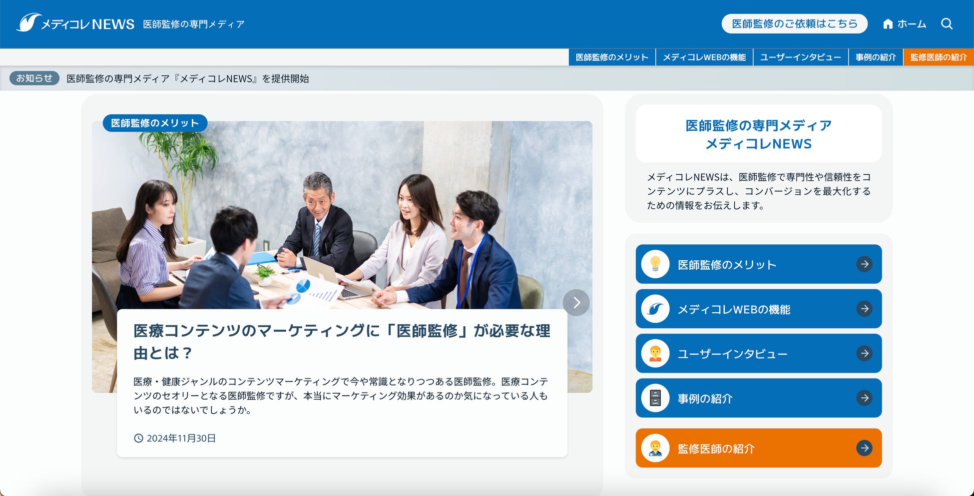そこでメディコレは、オンライン完結の医師監修サービス「メディコレWEB」の運用を通じて培った医師監修のノウハウを活かし、医師監修の専門メディア「メディコレNEWS」を公開することを決めました。