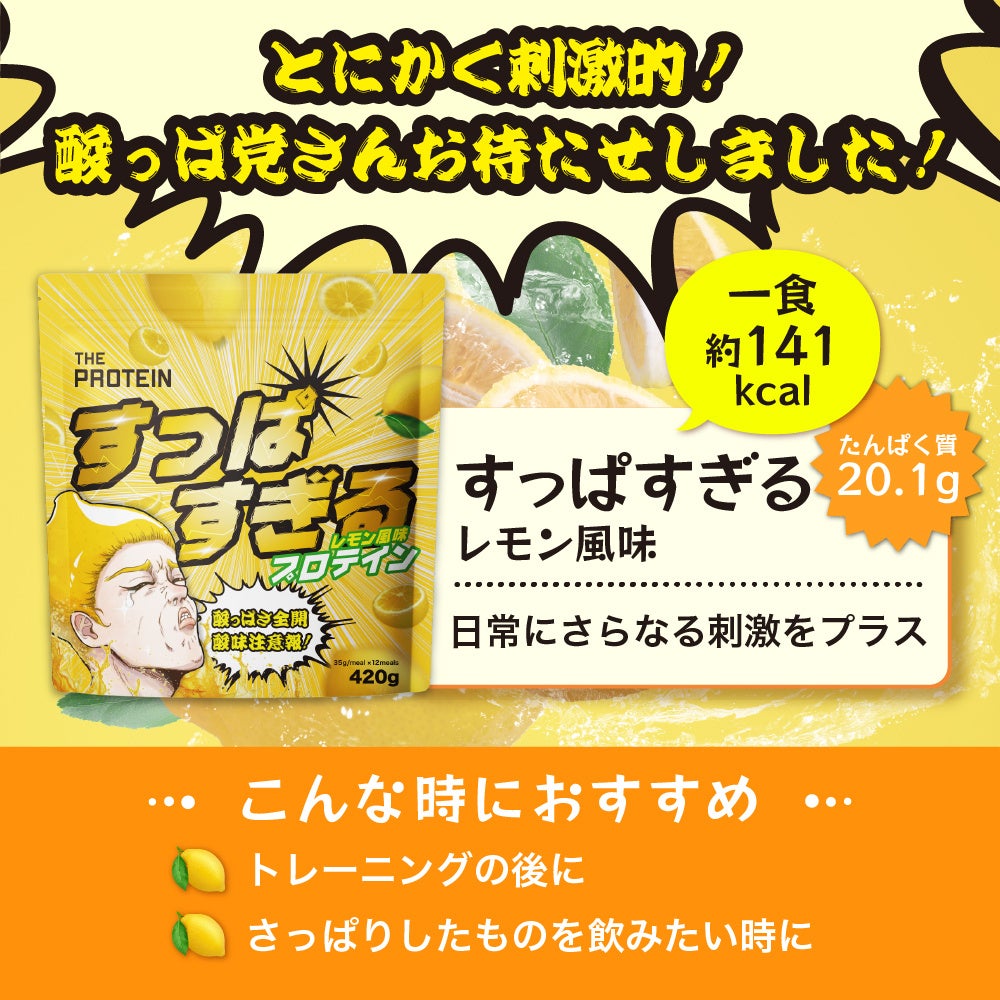 累計販売数50万個突破の THE PROTEIN(通称:ザプロ)から普段のプロテインとは一味違う、刺激の強い新フレーバー 〈甘すぎるチョコレート風味 〉〈すっぱすぎるレモン風味〉が登場!
