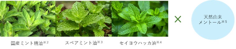 清涼成分が多い国産ミントを含む、3種のミント精油※2-4と植物由来のメントール※5を組み合わせた独自のクール処方。ほてった肌に清涼感をあたえ、爽快に。