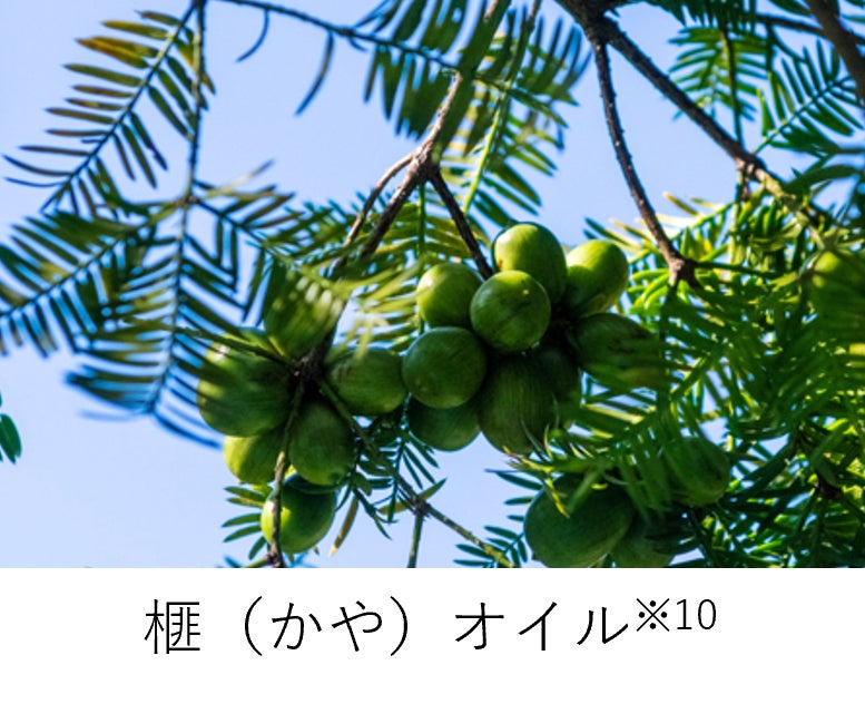高知県の一農家のみが生産するといわれる榧(かや)の種子から抽出した榧(かや)オイル※10。現在販売中のヘアケアとボディケアに続き、アイスミントシリーズのボディスクラブにも配合。榧(かや)オイル※10の継続的購入により、種の保存を支援します。