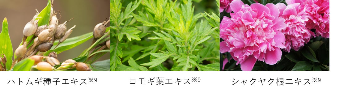 ハトムギ種子エキス※9、ヨモギ葉エキス※9、シャクヤク根エキス※9配合で夏の肌を整えてすこやかに保ちます。