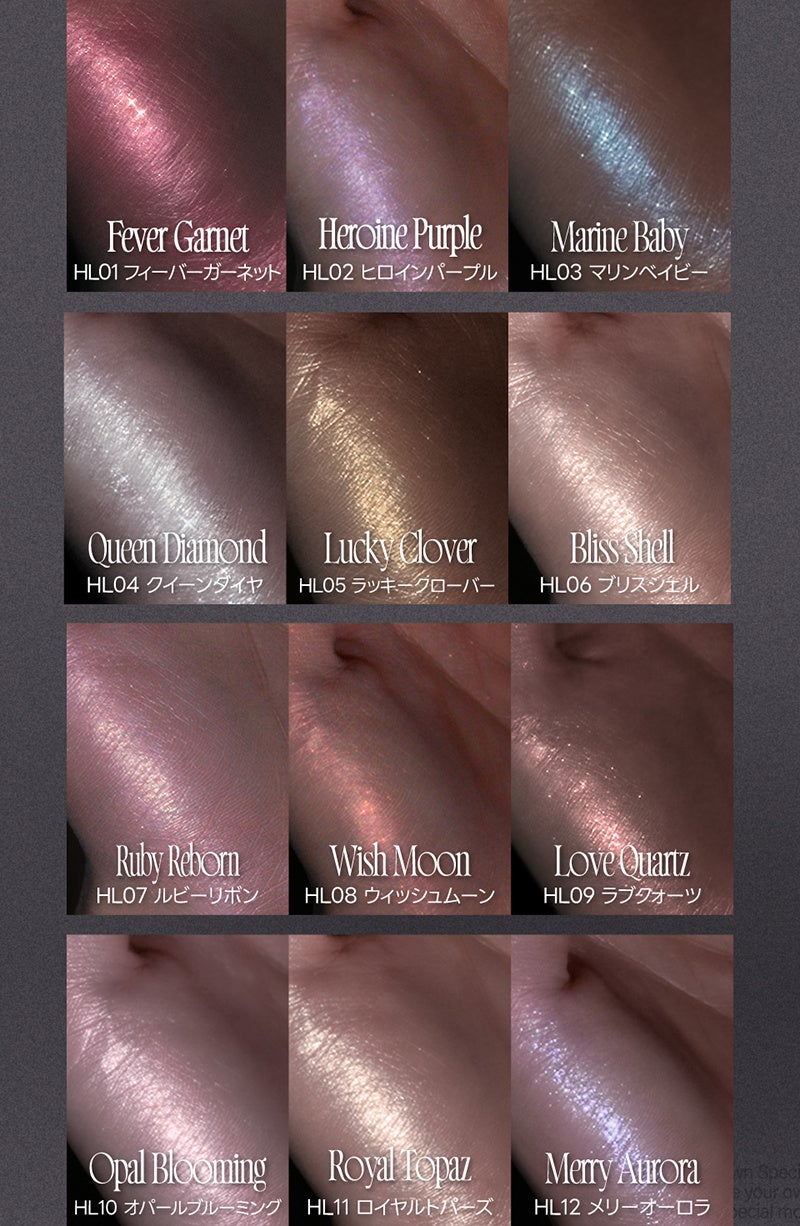 誕生石をテーマにシマー、ベール、セミグリッター、ジェリー、グリッターの5つの多様なテクスチャーが輝く艶を肌に与えます。