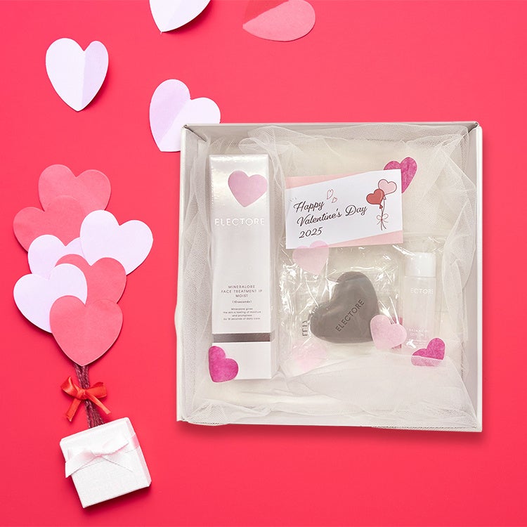 ELECTOREより贈り物にぴったりなバレンタインギフトセットが登場。10秒エイジングケアの「フェイストリートメント」にミニサイズアイテムがセットになった限定ギフトです。