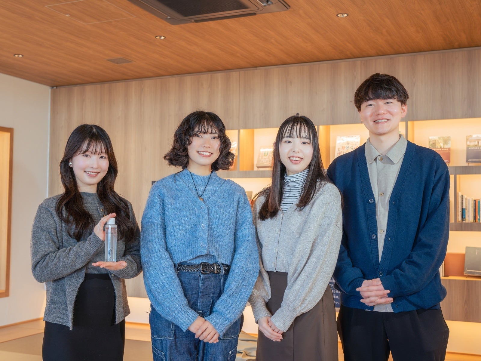 2023年に結成された東北大学の学生チームで、代表の岩間さん、副代表の河内さんをはじめとする5名がチームメンバーです。元々化粧品やスキンケアに興味を持っており、藤塚の湯を以前から利用していた代表と、地域の活性化につながる取り組みを行いたいと考えていた副代表が共同で企画を提案したのがきっかけでプロジェクトが始まりました。「藤塚地区の魅力を発信し、地域活性化に貢献する」という想いのもと、「FUJITSUKA化粧水」の開発に取り組みました。
