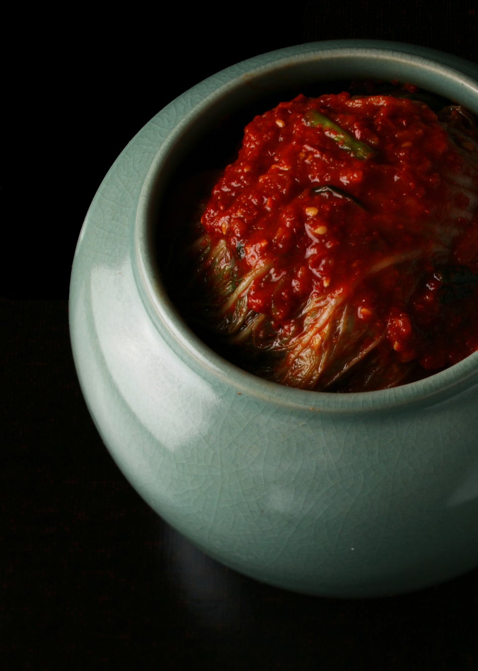 小松菜の風味を生かし、秘伝のヤンニョムで漬けた昔ながらのキムチ。