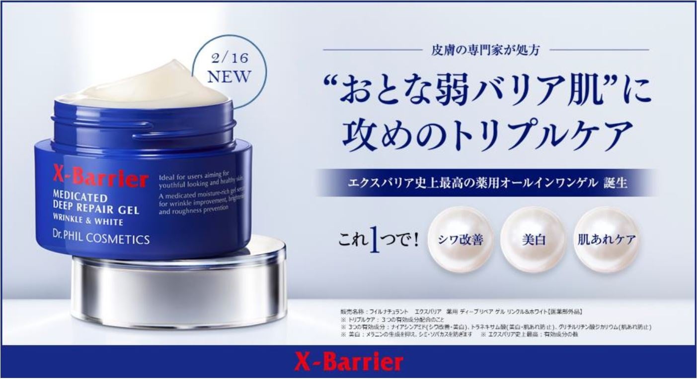 株式会社ドクターフィル コスメティクス(本社:東京都中央区 株式会社コーセー100%出資、代表取締役:山田 育宏)が展開する“おとな弱バリア肌”ケアブランド「エクスバリア」は、1品でシワ改善・美白・肌あれまでケアするオールインワンタイプの美容液ゲル「エクスバリア 薬用 ディープ リペア ゲル リンクル&ホワイト(税込5,940円)」を2025年2月16日(日)より公式通販サイト(メゾンコーセー・楽天・Amazon、全国のイオン、化粧品専門店)で発売します。