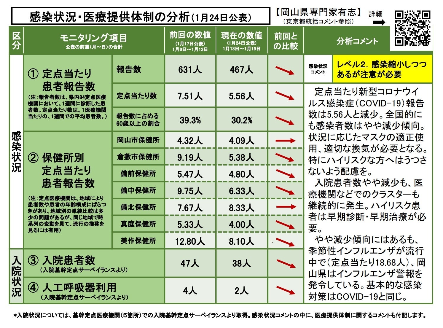 ・岡山県内の感染状況・医療提供体制の分析について(2025年1月17日現在)