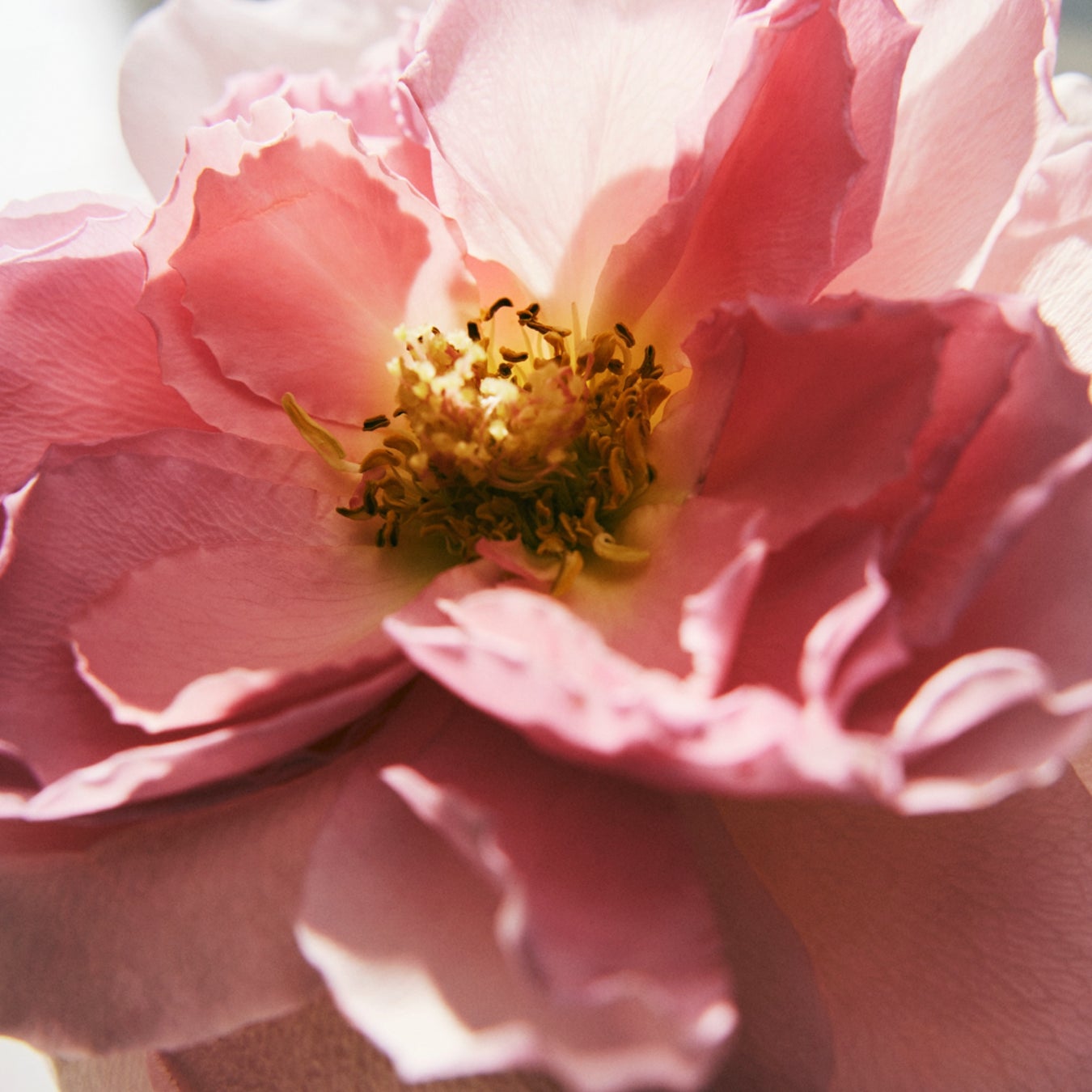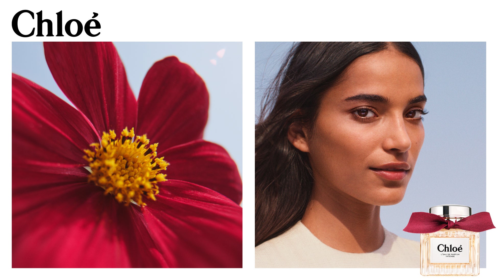 クロエ オードパルファム インテンスでは、クロエらしいサンレイプリーツをモチーフにしたフレグランスボトルをリニューアル。ブラックと淡いベージュのラベルをあしらい、さらにモダンで洗練されたスタイルになりました。ボトルネックに結んだリボンの色も深みのあるガーネットカラーに変わり、キャンペーンビジュアルに登場する咲き誇る花々を彷彿とさせます。