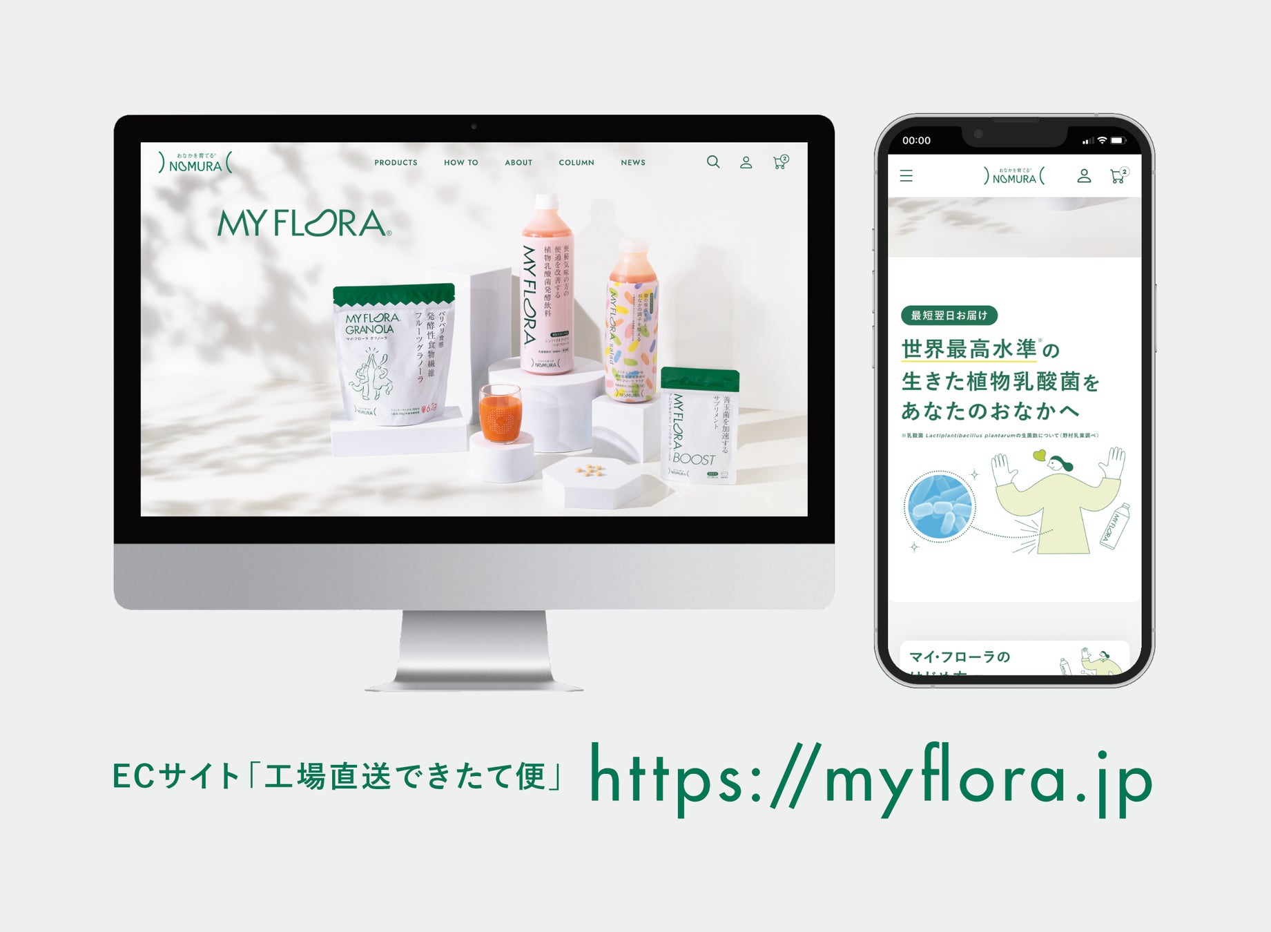 看板商品の実感腸活ドリンク「マイ・フローラ」が誕生してから、今年で約13年。はじめは本社の工場で少量から作っていた商品が、たくさんのお客さまからの口コミをきっかけに全国へ広がりました。2023年7月には、120年以上つづく野村乳業の歴史で初めてとなる工場移転を行い、新工場「マイ・フローラ プラント」がオープンしました。今回、お客さまとのつながりの場所であるECサイトをストレスなく、心地よい場所にさらに成長させていきたいとの想いから全面リニューアルを行いました。