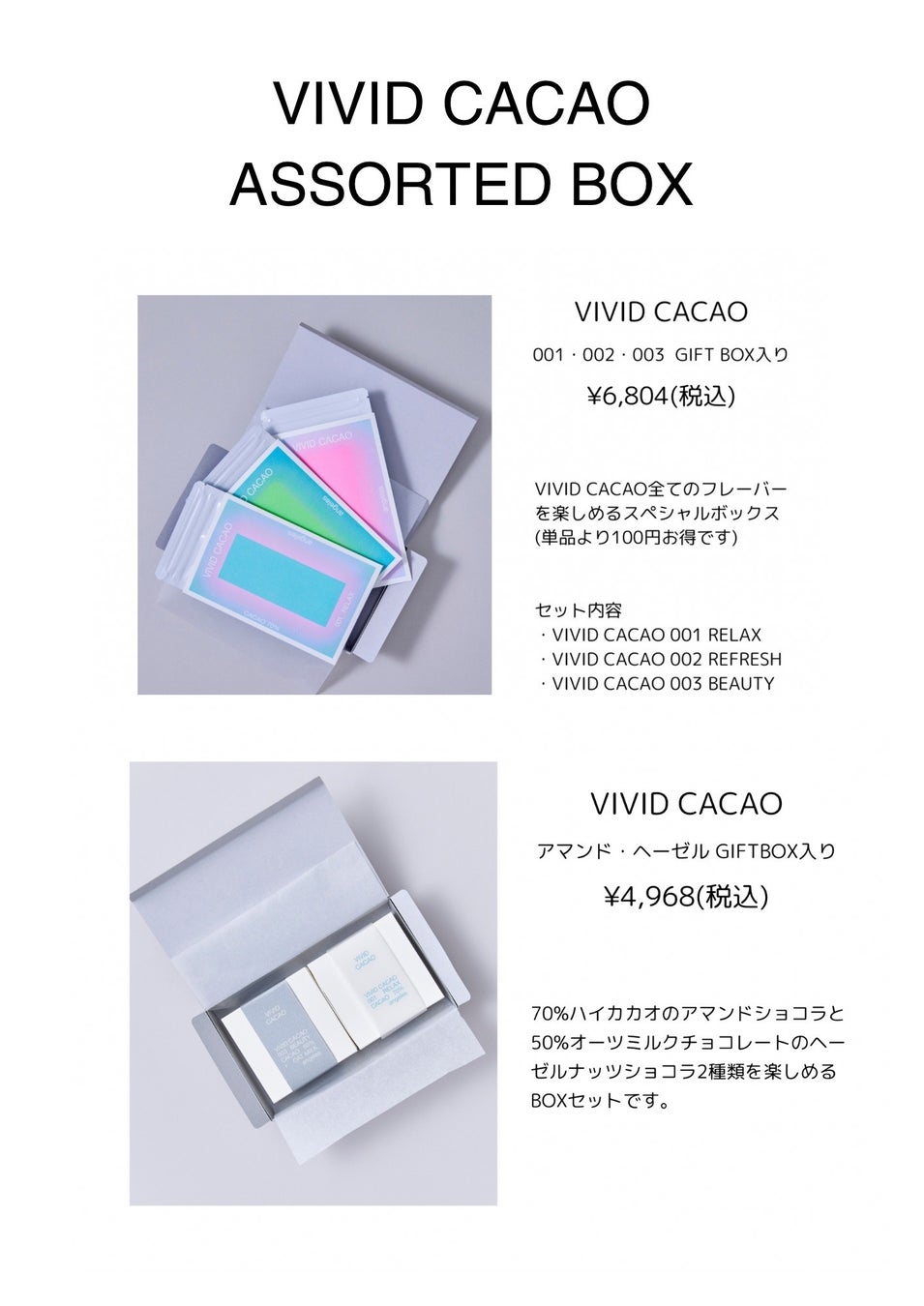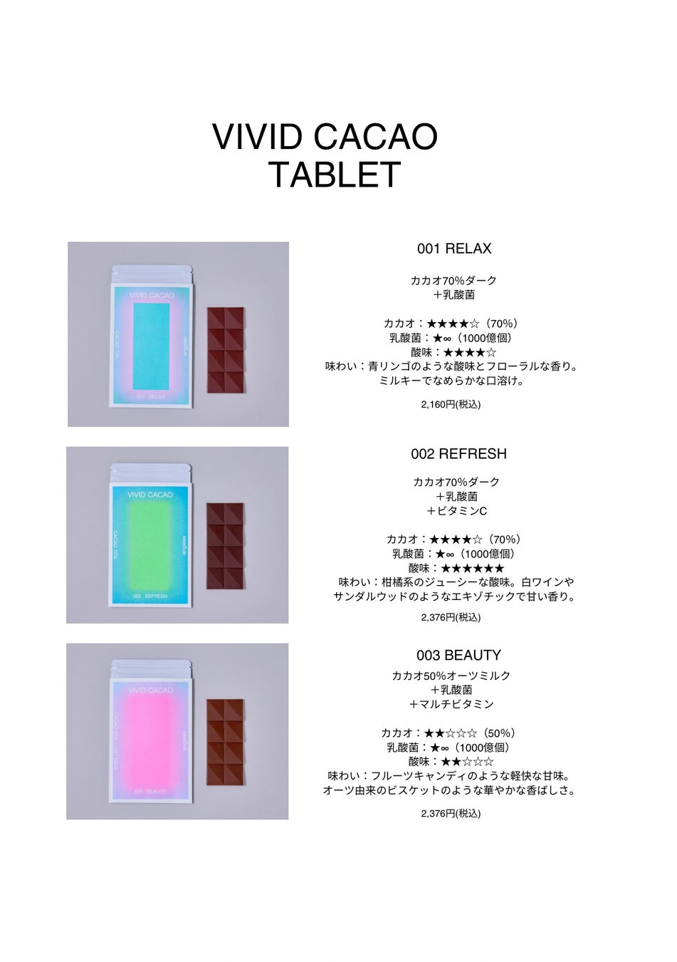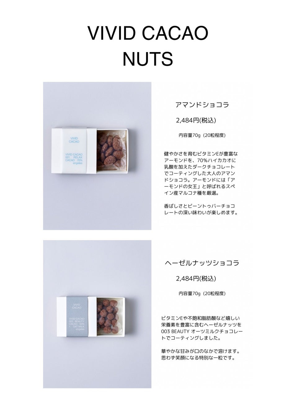 “からだ整う、こころ輝く”をミッションとして、多様な女性のライフスタイルを豊かにする製品を提案する会社です。「毎日を前向きに過ごしたい気持ち」を応援する「VIVID CACAO」のチョコレートは、日常を少しでもサポートできる存在を目指しています。