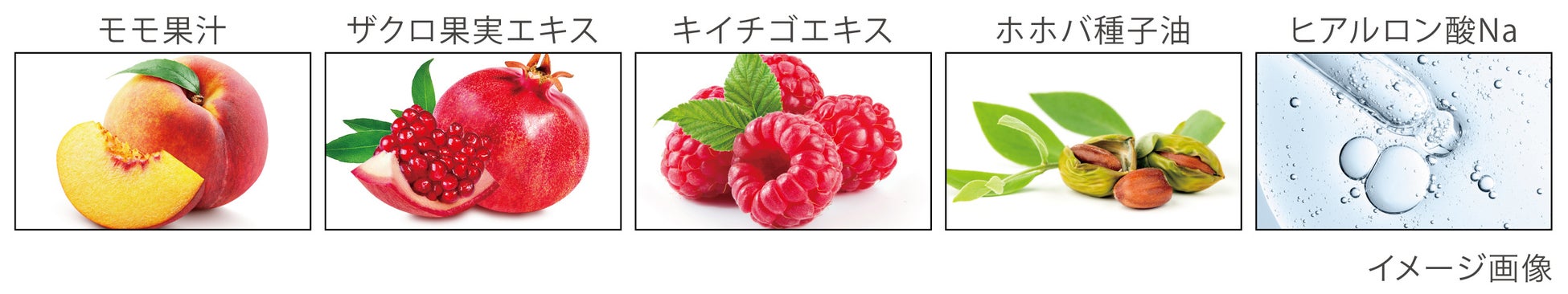 モモ果汁、ザクロ果実エキス、キイチゴエキス、ホホバ種子油、ヒアルロン酸Na