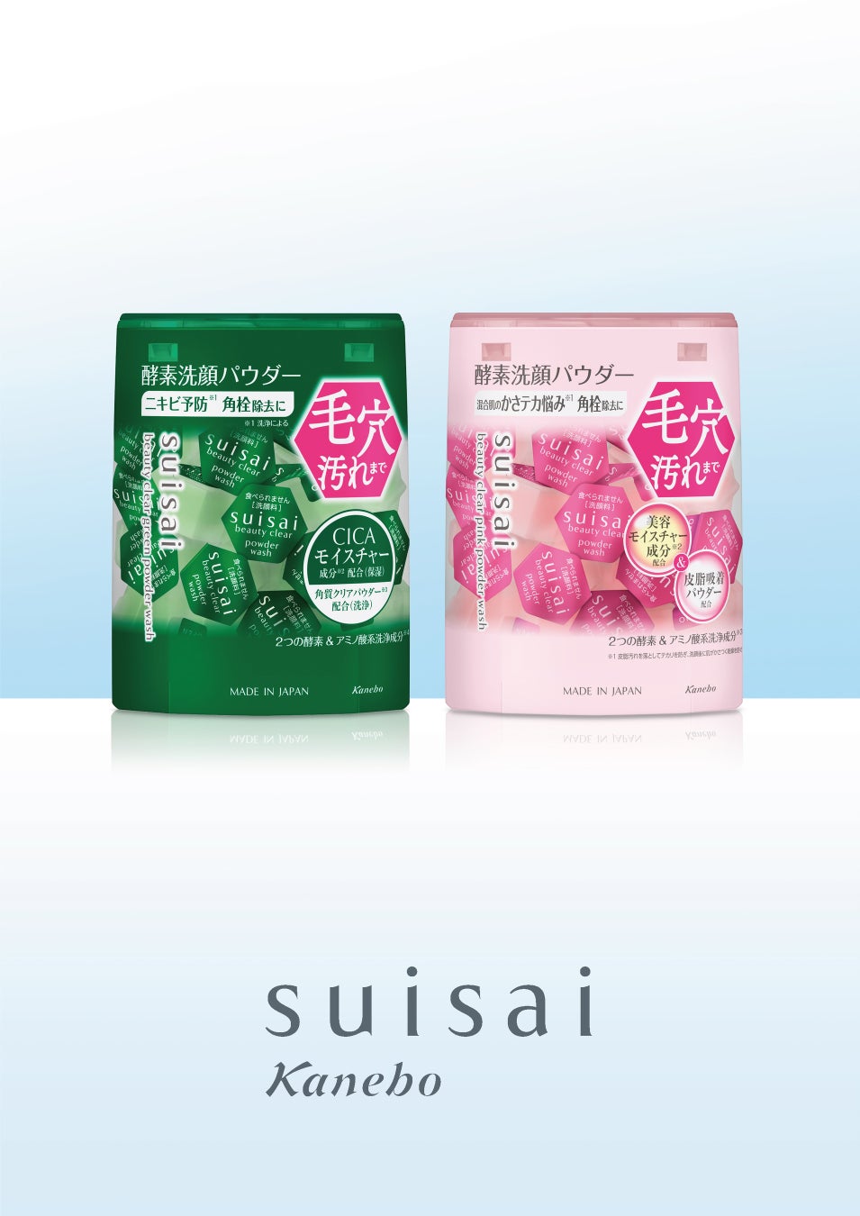 「パウダーウォッシュ」シリーズは、洗顔料(カウンセリング品)市場で10年連続売上No.1※2 に輝くロングセラーアイテムとして、多くの方にご愛用いただいております。2種類の酵素&アミノ酸系洗浄成分※3 を配合し、うるおいを守りながら“毛穴の黒ずみ汚れ・角栓・ざらつき・古い角質”をしっかり除去。洗うたび透明感がアップします。中でも「パウダーウォッシュN」は、ざらざらした毛穴汚れもごっそり除去し、つるすべ肌に導くと、人気の高い酵素※1洗顔パウダーです。他にも金の美容オイル※4 を配合し、乾燥を防ぎながらしっとりとした洗い上がりを実現する「ゴールド パウダーウォッシュ」。皮脂除去複合成分※5 を配合し、テカリを抑える「ブラック パウダーウォッシュ」をラインアップしています。今回、ブランド誕生20周年を迎えるにあたり、発売する「グリーン パウダーウォッシュ」は、CICAモイスチャー成分※6配合(保湿)。毛穴の黒ずみ汚れをすっきり落としながらニキビの原因となる過剰な皮脂・古い角質を除去し、さっぱりつるつるな素肌へ。「ピンク パウダーウォッシュ」は、毛穴の黒ずみ汚れ・角栓・皮脂を落としながら、水油バランスの整ったなめらかな素肌へ導きます。またsuisaiでは、美肌の見た目に影響する毛穴の黒ずみ汚れ、くすみ、ざらつきなどを「肌ノイズ」と称し、「肌ノイズをミュートせよ。」をキャッチコピーとしたプロモーションを実施します。カネボウ化粧品の60年の酵素洗顔研究によって生み出された毛穴の黒ずみ汚れや詰まり、古い角質、過剰な皮脂を取り去る技術で、美肌印象を向上するイメージも醸成していきます。