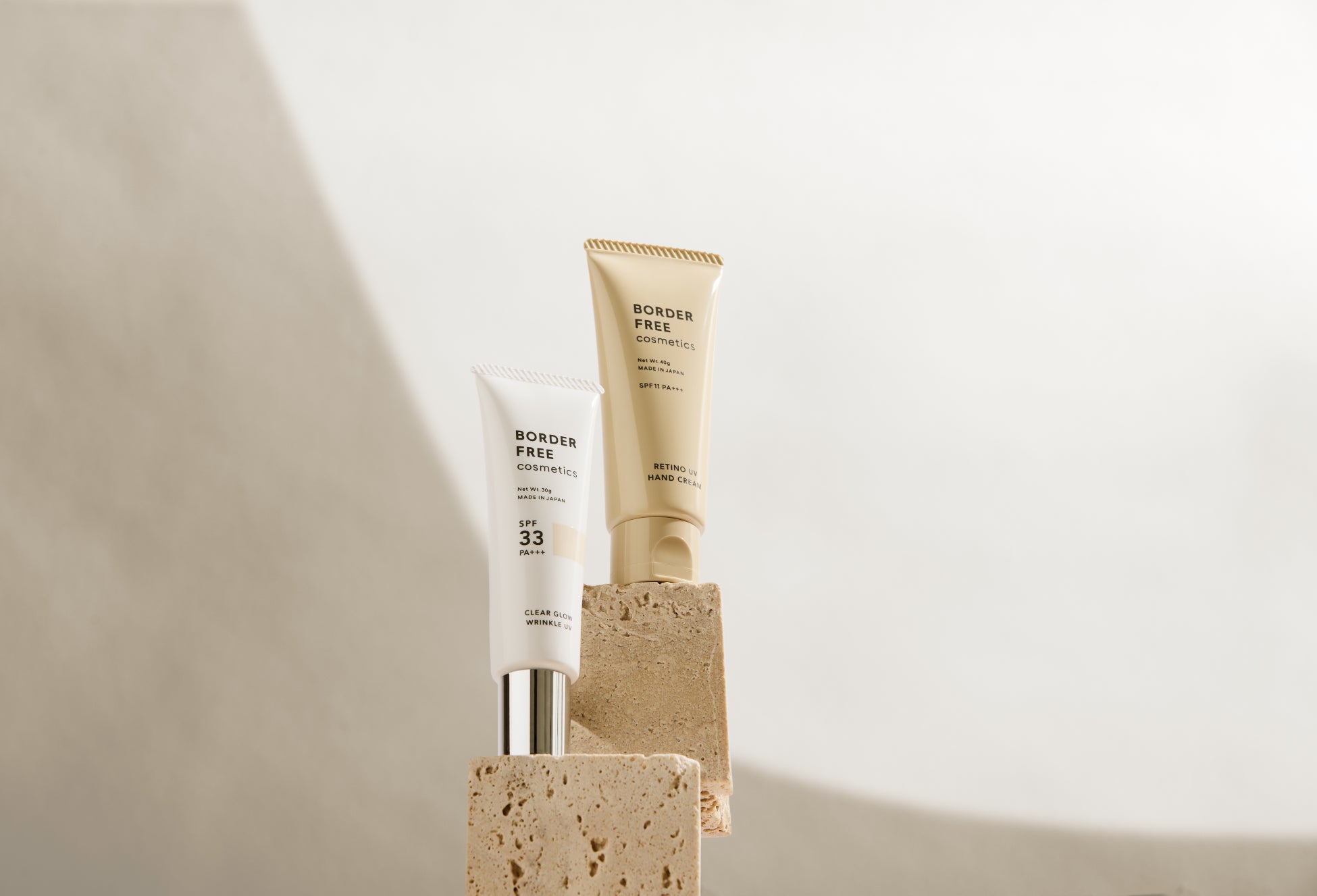 BORDER FREE cosmeticsは、2025年2月19日(水)17:00〜UVケア新製品「クリアグロウリンクルUV」「レチノUVハンドクリーム」を先行発売いたします。
