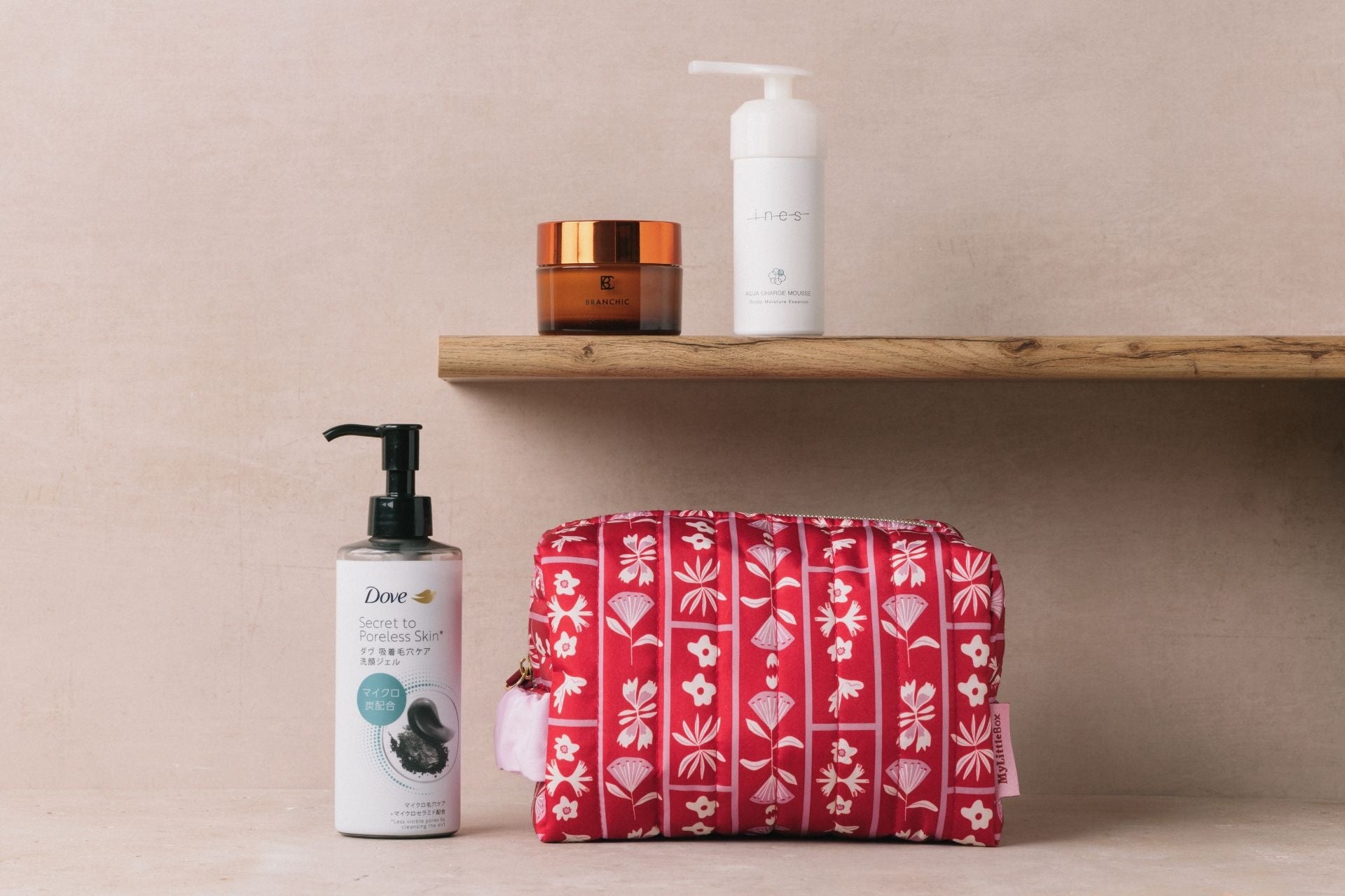 2月のボックスのテーマは「SPA AT HOME」。まだまだ寒さの続く冬のシーズンに、おうちでスパのような至福の時間を過ごして欲しいという願いが込められています。プレステージブランドとの特別な出会いや、日々のバスタイムをワンランクアップさせる新しいコスメの発見で、うるおいたっぷりのセルフケアをエンジョイして。オリジナルの自立型フラワーポーチは、バスルームを整える収納にも、持ち運びにも便利です。