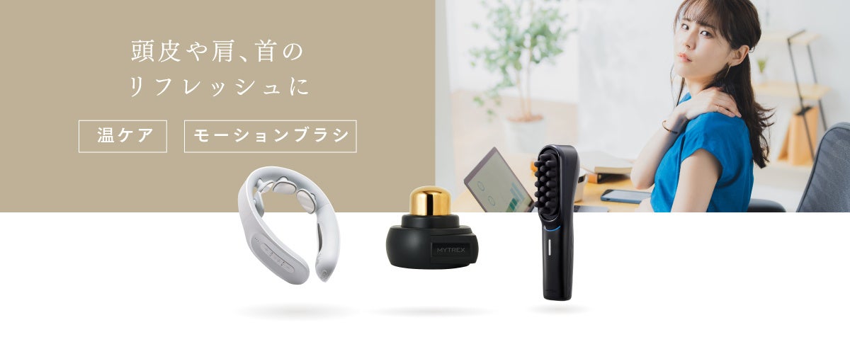 人気商品は、パワフル振動で本格ケアを叶えるトータルボディケアハンディガン『MYTREX REBIVE シリーズ』と、サロン級のムダ⽑ケア&ブライトニングケアを叶える次世代光美容器「MYTREX MiRAY」。