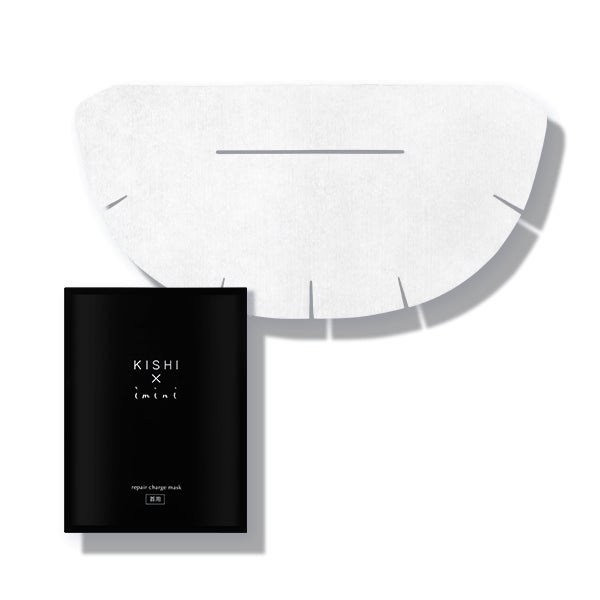 第1弾となる記念すべきアイテムは、年齢の出やすい首もとのために開発されたシートマスク「イミニ リペアチャージマスク(首用)」です。特殊な切り込み構造で、はがれにくくピタッと密着し、作業しながらの首もとの集中ケアを叶えます。※1 パントエア/コメヌカ発酵エキス液(保湿成分)