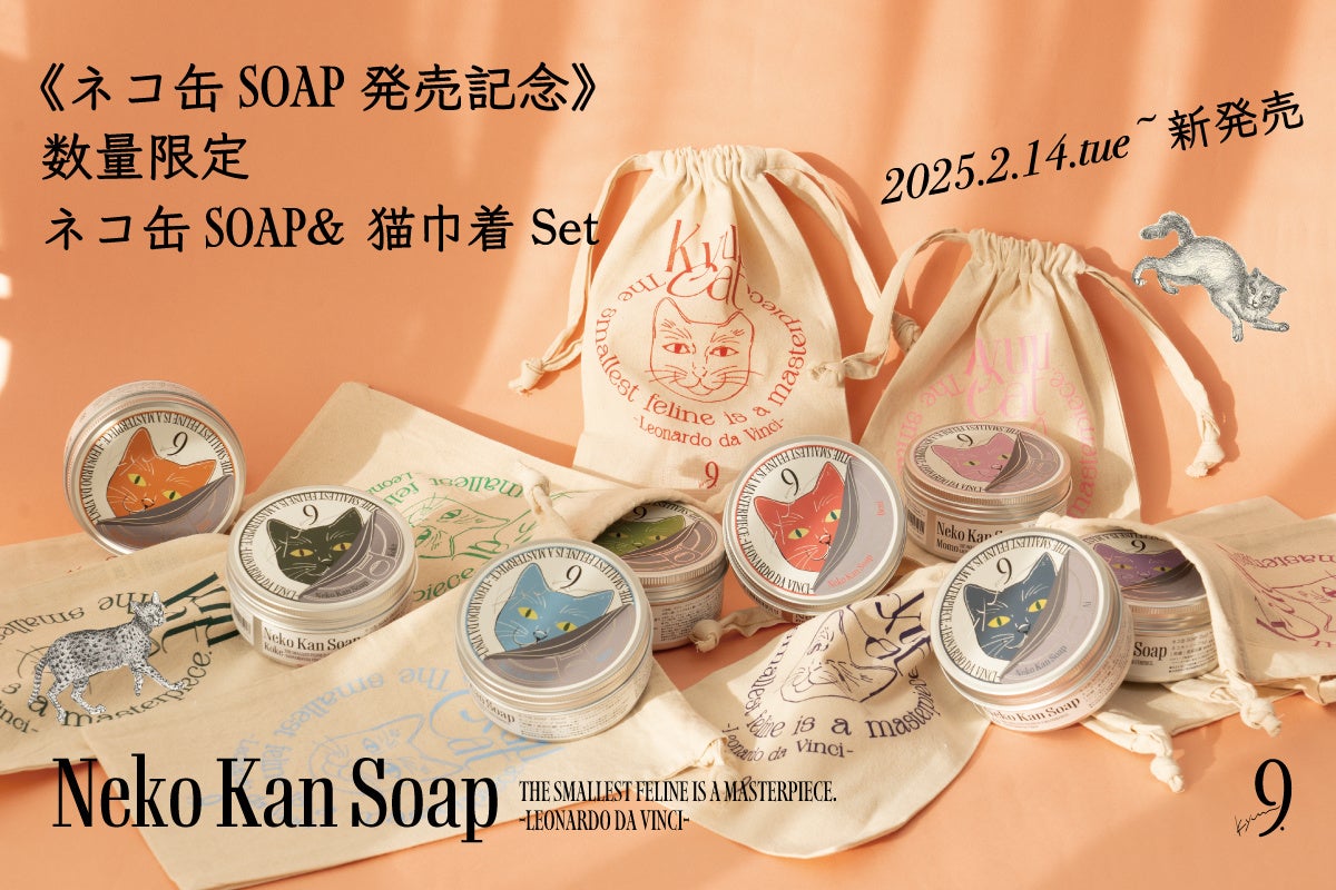 株式会社フランネル(本社:大阪市中央区 代表取締役:柏尾耕資)が展開するパーソナライズ美容石鹸ブランド「9.kyuu(キュウ)」は、2025年2月14日(金)より、『ネコ缶SOAP』をオフィシャルECサイト(https://f-room.shop/ )と2月14日(金)~16日(日)開催の展示会「NEW ENERGY TOKYO 2025」で先行発売、2月22日(土)ニャンニャンニャンの日より、一般発売します。