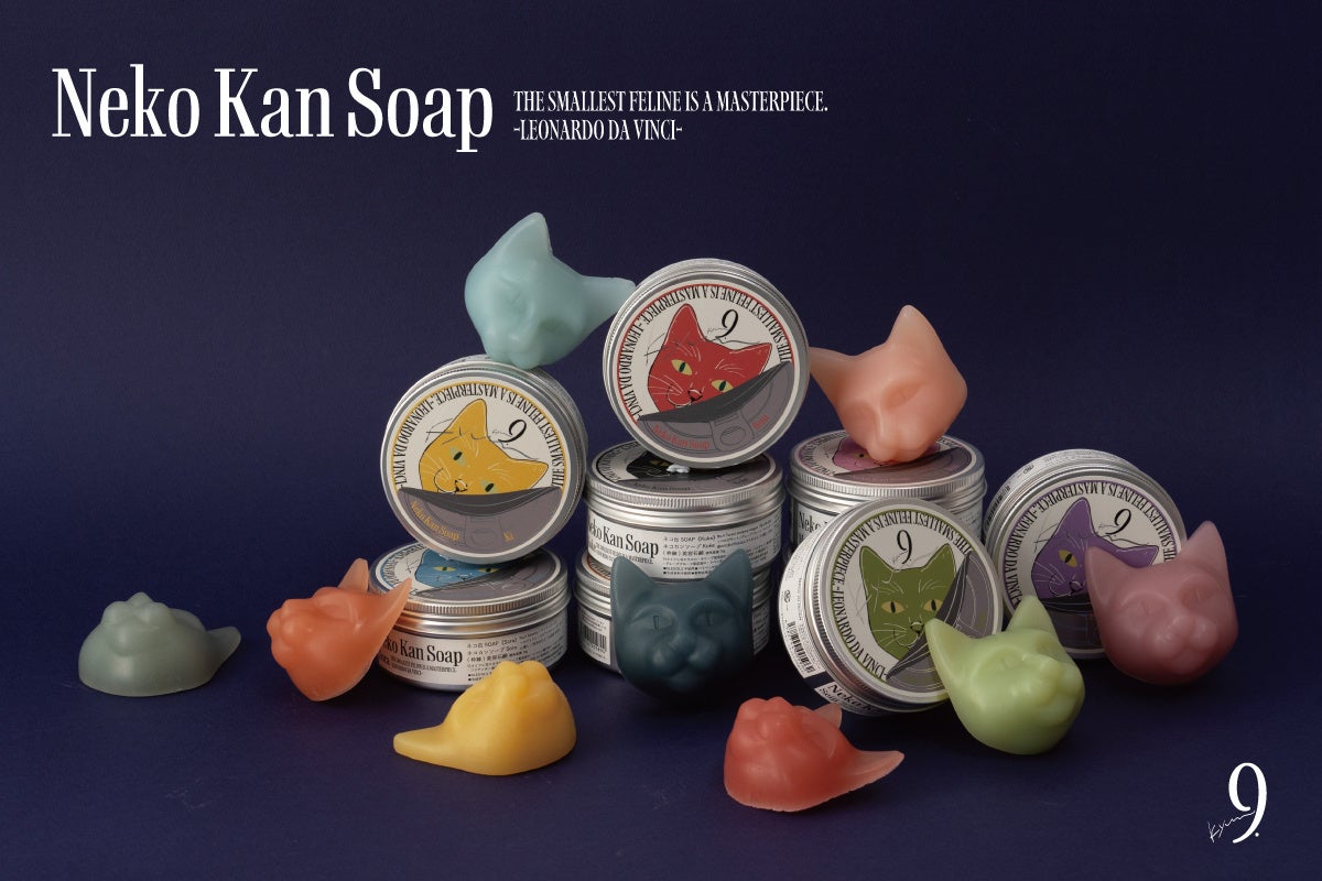 9.kyuu(キュウ)のアイコンであるネコ型美容石鹸が『ハコイリネコ』から『ネコ缶SOAP』にリニューアル!猫2匹と暮らしてるブランドディレクターが「ネコカン」をイメージして企画&デザインした『ネコ缶SOAP』は石鹸はもちろんパッケージもキャッチ―なデザインに!