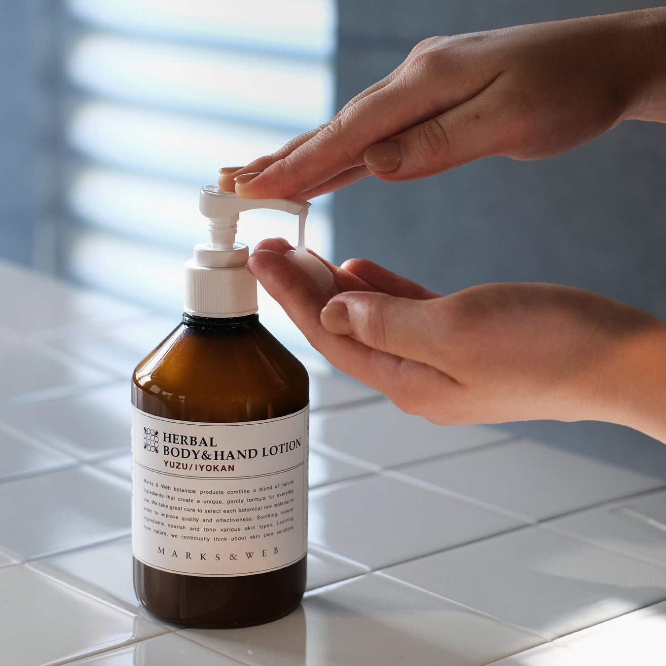 マークスアンドウェブで定番の全身用乳液「ハーバルボディ&ハンドローション」も、「ユズ/イヨカン」の香りでご用意しました。乾いた空気や気温差の影響を受けやすい春先の保湿ケアにおすすめ。エモリエント効果のあるシアバターとカルナウバロウの働きで、角質層のすみずみまで潤いを与え、手荒れや、足・背中のかゆみの原因にもなる乾燥を防ぎます。この時季ならではの香りが楽しめるいつもより少し特別なアイテムは、贈り物にもぴったりです。