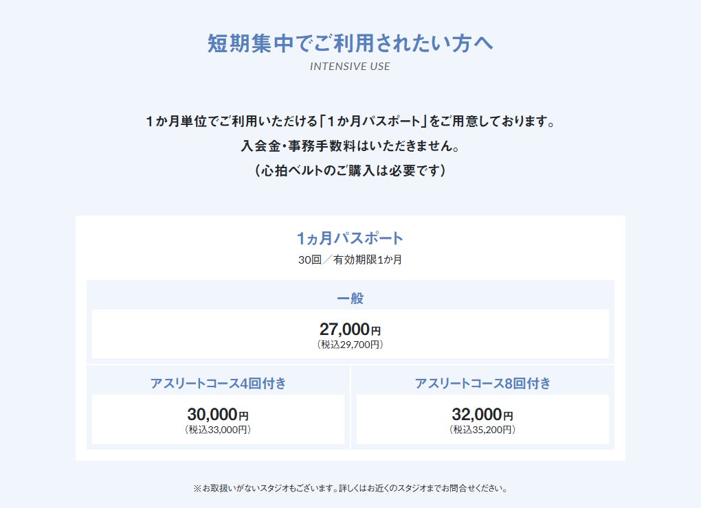 ※1ヶ月パスポートは入会金・事務手数料なし、在籍期間の制限はありません(通常は6ヵ月の在籍が必要です。)