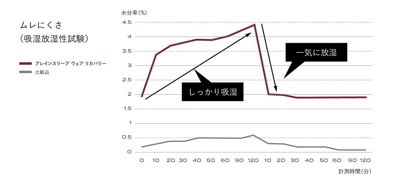 また、圧倒的な吸湿放湿力でムレ感を解消。吸湿放湿性の優れた生地で、ムレない快適な着心地を実現します。