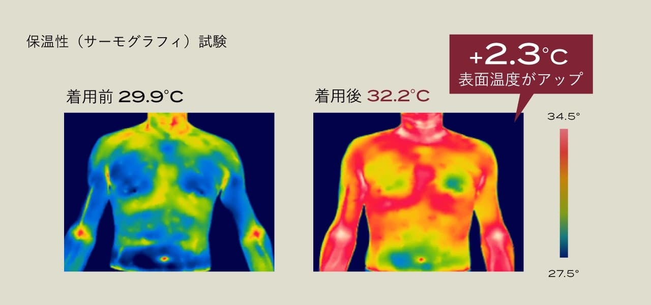 約+2.3℃表面温度がアップ、効果的に身体を温める