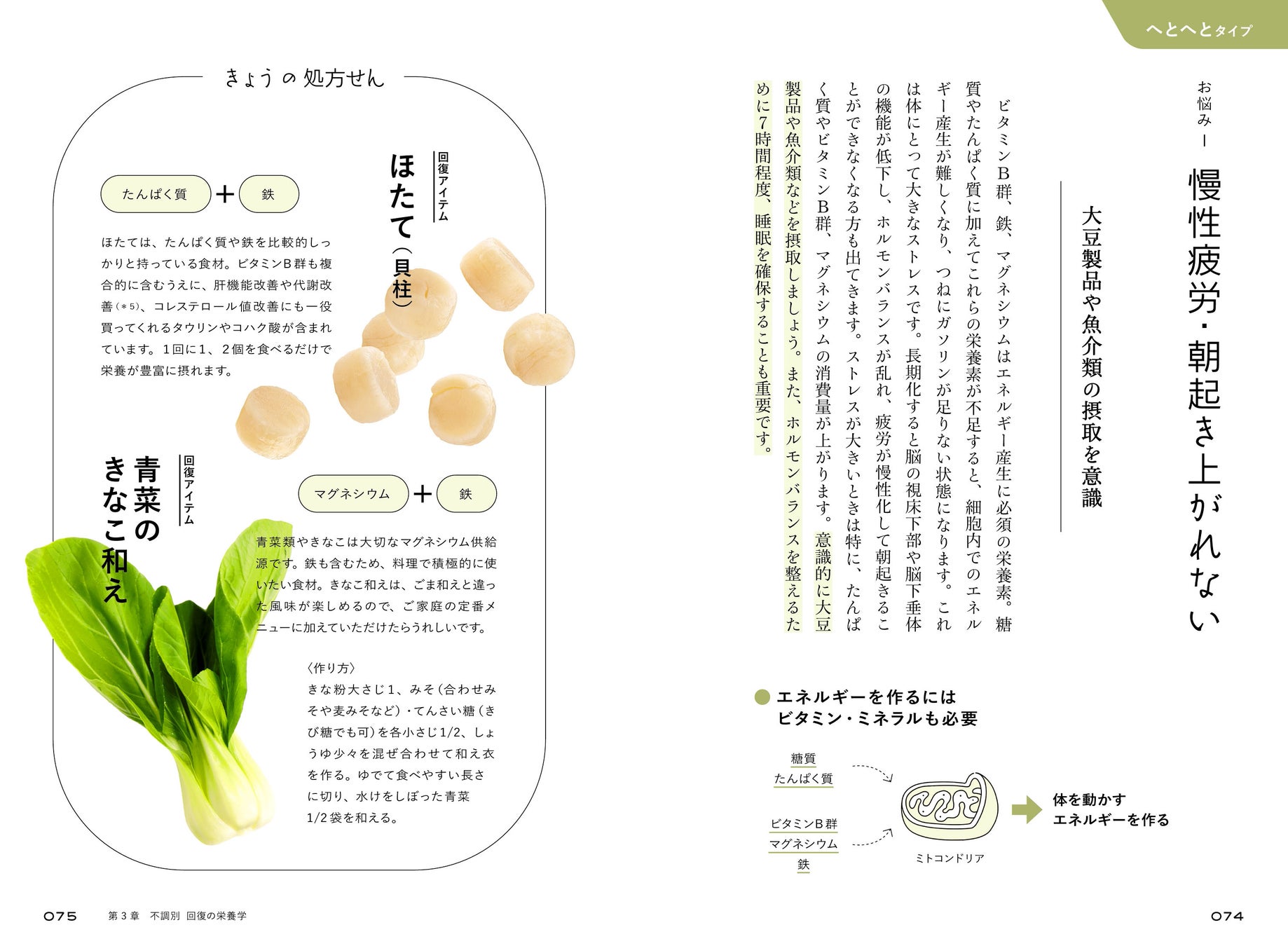 「慢性疲労」「よく眠れない」「食べていないのに太る」「甘いモノやお酒が無性に欲しい」「冷え」「生理痛がひどい」…などの症状の背景には実は栄養不足が隠れています。よくある不調やお悩み別に積極的に摂りたい栄養素とおすすめ食材を紹介。体調や体質に合わせた食選びに、自分と家族の健康管理に、すぐに役立つ情報が満載です。
