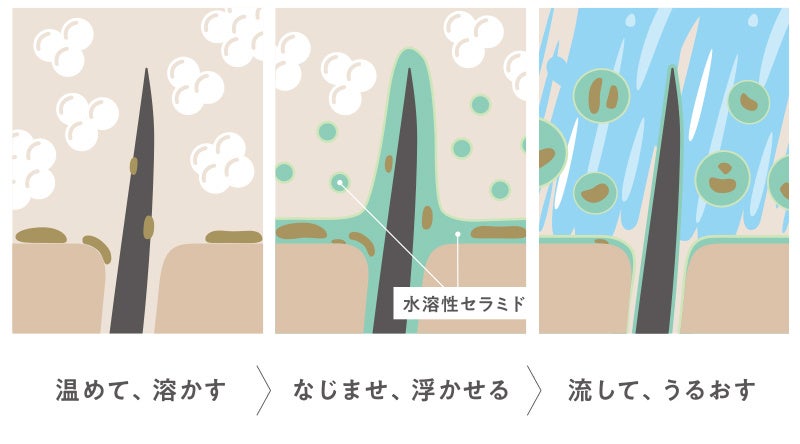 肌を乾燥から守る美容成分「セラミド」に着目し、新たに洗浄美容液を開発。セラミドが頭皮の汚れを浮かせ、うるおいを与えながらしっとりと洗い上げます。こすらず洗う水流洗浄だから叶う、頭皮・髪のことを考えた処方です。
