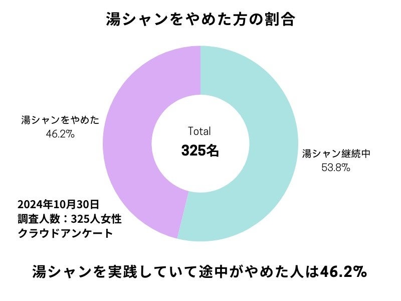 湯シャンを挫折してやめた人は、46.2%に上がることがわかりました。