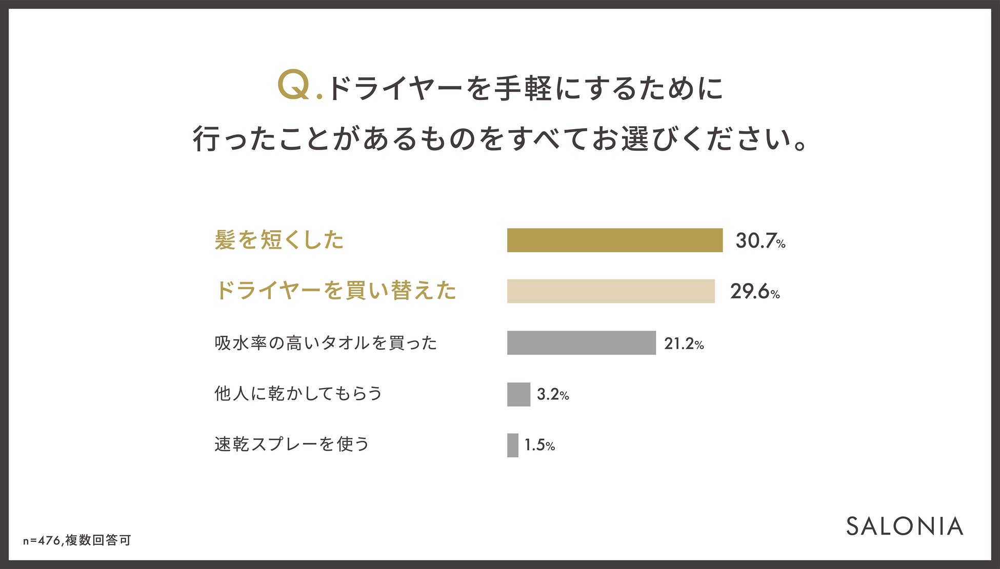 時短のために「ドライヤーを買い替えた」と「髪を短く切った」が約3割近くも