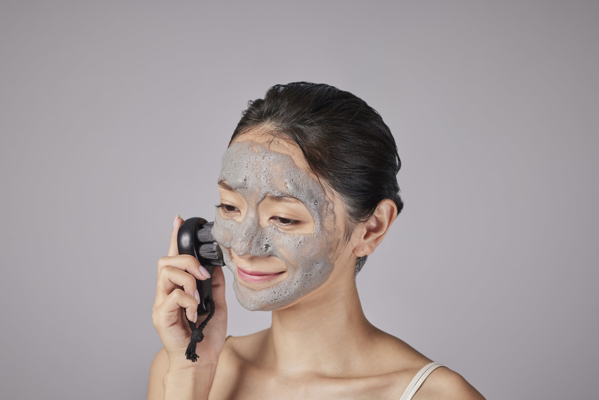 パック後、毛穴よりも小さい極細毛のブラシで洗顔。