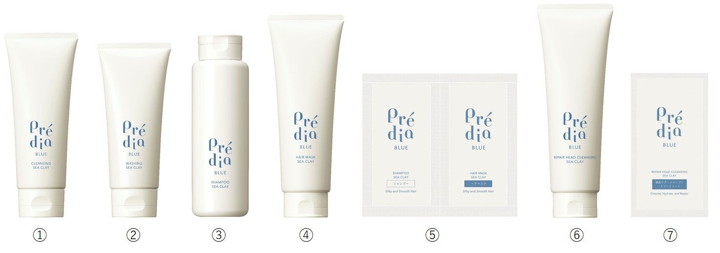 「Prédia BLUE」は、Refresh w/ SEA(リフレッシュウィズシー)をコンセプトに掲げ、海を見て、聴いて、触って、香りを通して感じる「前向きな気持ち」と、自分の中に共存する様々な自己の「オン・オフの切り替え」に焦点をあてたアイテムを展開。海泥(※6)、海洋深層水(※7)、海藻(※8)など、厳選した海の天然由来素材を配合することにより、効果感だけでなく、テクスチャーや色、香りからも「海」を感じられることにこだわったシリーズです。