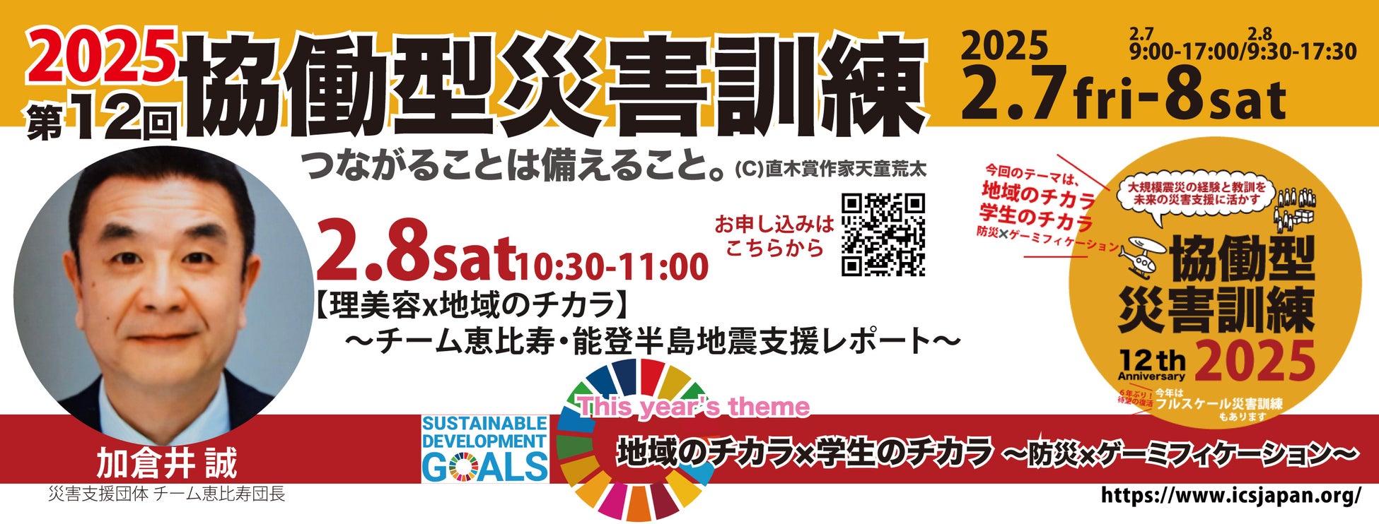 能登半島地震発災から1年が経過しました。しかしながら、今もなお、現地では支援が続いています。【2/8土】10:30〜【理美容x地域のチカラ】〜チーム恵比寿・能登半島地震支援レポート〜(プログラム変更)では、発災直後から現地に入り、様々な連携をしながら多方面の支援を行ってきた災害支援団体チーム恵比寿(えびす)の理美容を中心とした新しい支援の形についてレポートして頂きます。