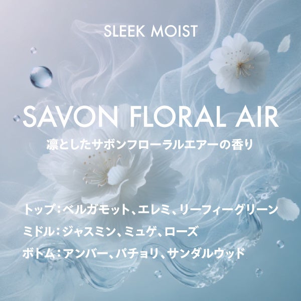 スリークモイストの香りは、凛としたサボンフローラルエアーの香りです。