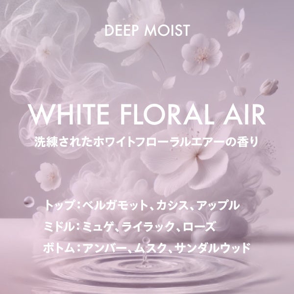 ディープモイストの香りは、洗練されたホワイトフローラルエアーの香りです。