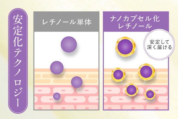 「ナノ多層カプセル」に入れる特殊技術で、レチノール*5を安定化させながら、肌の奥まで高浸透*6させます。