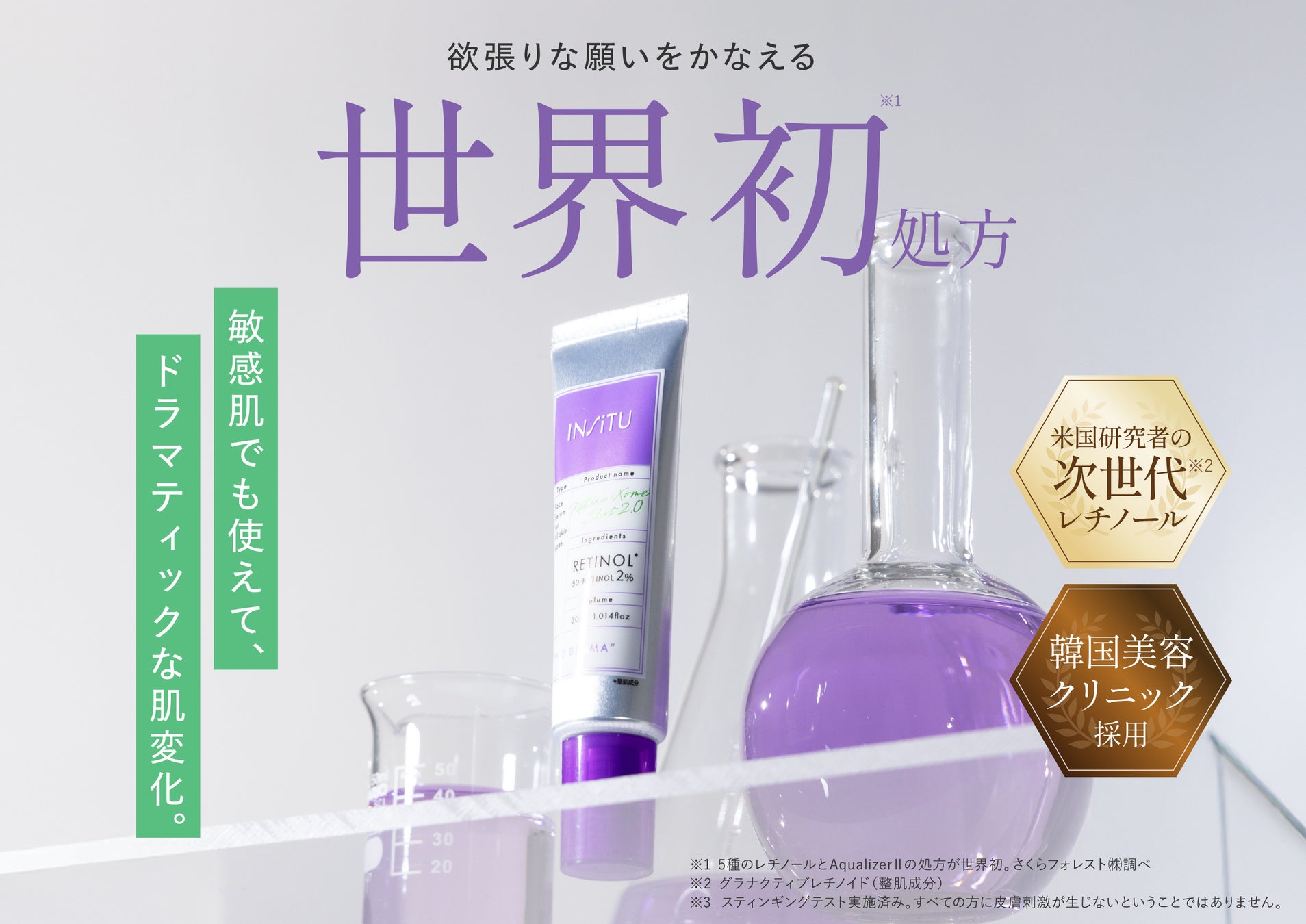 さくらフォレスト株式会社(所在地:福岡県福岡市 / 代表取締役社⻑:高島 励央)が展開するスキンケアブランド INSiTU(インシトゥ)は、世界初処方*1の<5Dレチノール>*2を配合した、次世代レチノール美容液*3「レチノソームショット2.0」を、2025年2月10日(月)より公式サイト・ECモールにて新発売いたします。