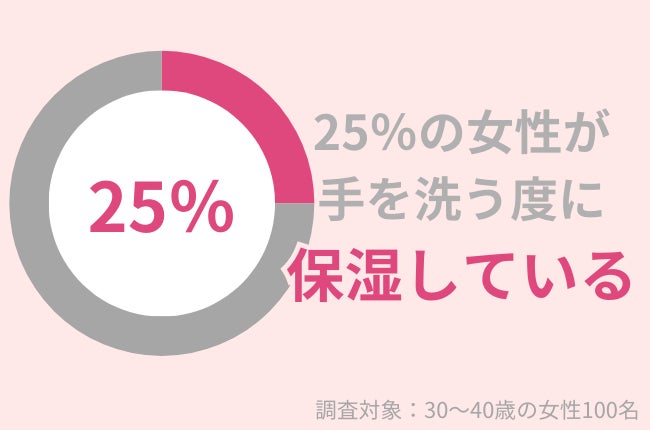 調査の結果、30代女性のうち25%の方が、手を洗うたびに保湿をしているとわかりました。