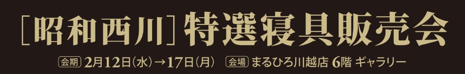 MuAtsu(ムアツ)を中心に上質な寝具を販売する昭和西川株式会社(所在地:東京都中央区、代表:西川惠)から、2月12日(水)~ 17日(月) まるひろ川越店で開催される特選寝具販売会のお知らせです。期間中の2月15日(土)には、快眠セラピスト・睡眠環境プランナー三橋美穂さんによるトークイベントも開催いたします。