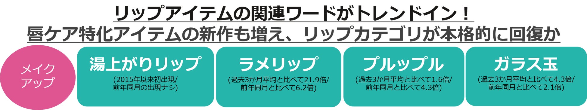 ・リップアイテムの関連ワードがトレンドイン!唇ケア特化アイテムの新作も増え、リップカテゴリが本格的に回復か