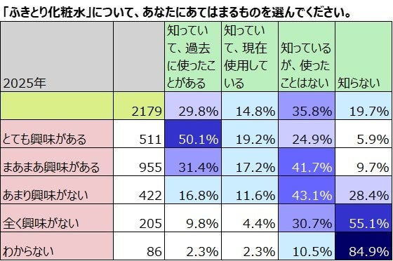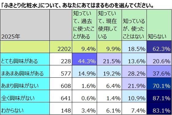 「ふきとりの日」に合わせたスキンケア・美容に関する意識。ふきとり化粧水の使用経験、「とても美容に興味がある」男女の約7割