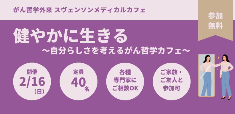 スヴェンソングループの株式会社スヴェンソン(本社:東京都港区、代表取締役社長 児玉義則)レディス事業部は、がん患者様やご家族が抱える不安・悩みを解消したいという思いから実施している、がん哲学外来 スヴェンソンメディカルカフェを「健やかに生きる~自分らしさを考えるがん哲学カフェ~」をテーマにし、2025年2月16日(日)浅草公会堂にて開催いたします。