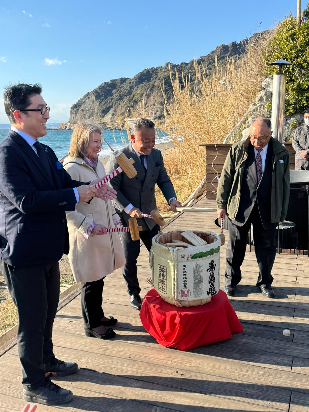2月22日のオープンに合わせ、株式会社紀伊乃国屋では同地でプレオープンイベントを実施。会場には、60人ほどの関係者が集まり、同社代表取締役である蛭田憲市氏によるスピーチの他、株式会社HARVIA JAPAN代表の笠間氏、フィンランド大使、鋸南町町長などのスピーチが行われました。
