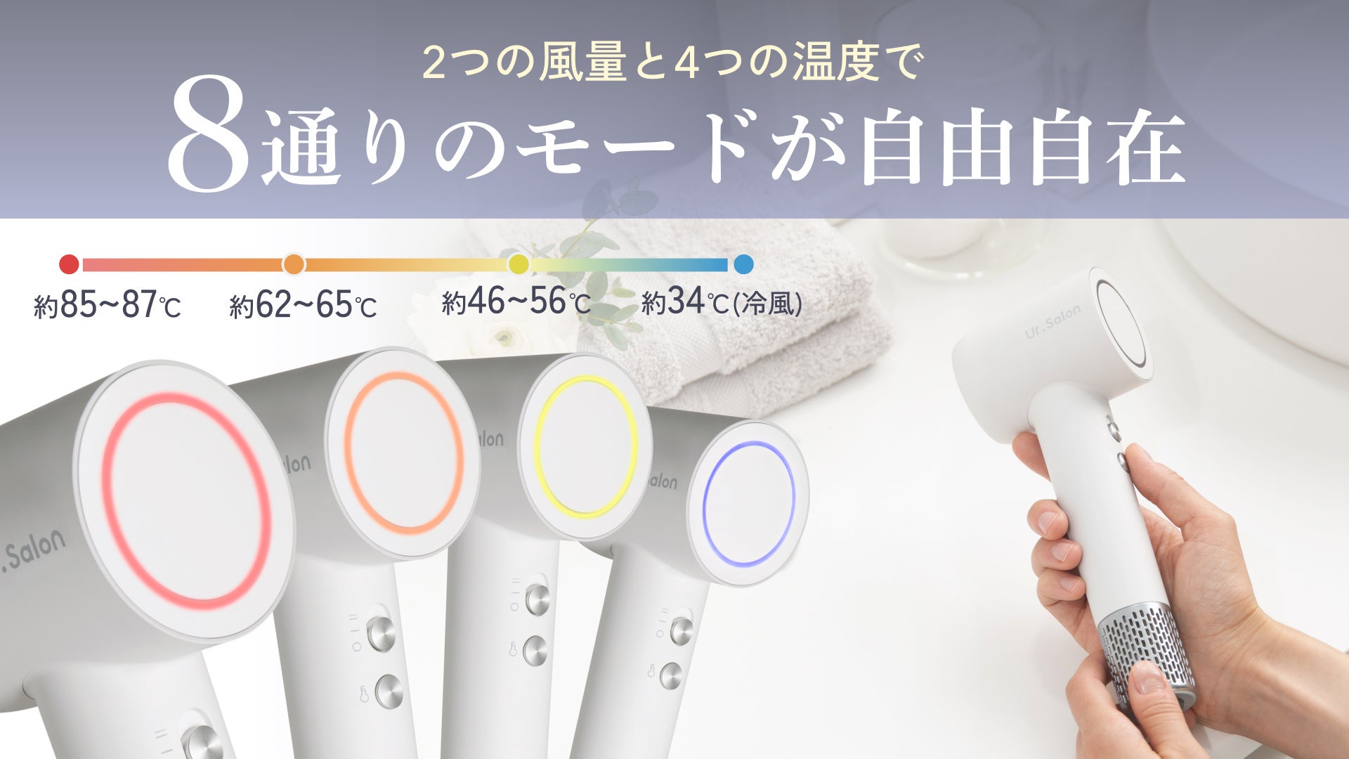 ボタン一つで簡単に8種類のモードを切り替え可能。速乾はもちろん、スタイリングも思いのまま。誰でも手軽に、理想のヘアスタイルを実現できます。