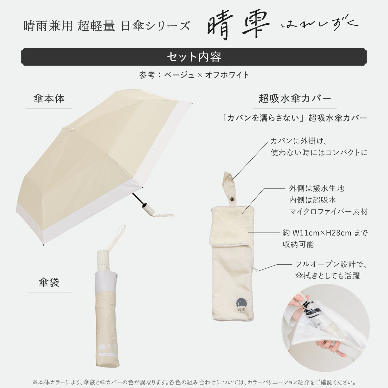 ② 超吸水傘カバーで濡れた傘も安心 〜濡れたまま、さっと収納