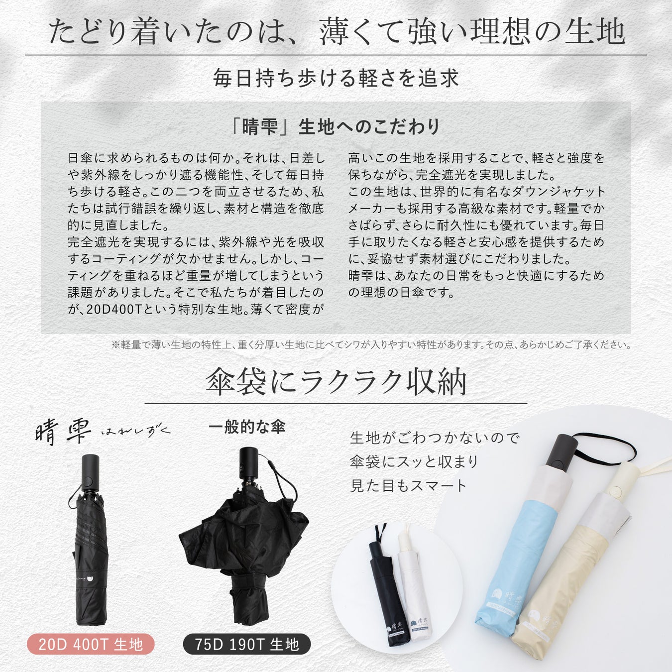 晴雨兼用 超軽量日傘シリーズ「晴雫」の特長