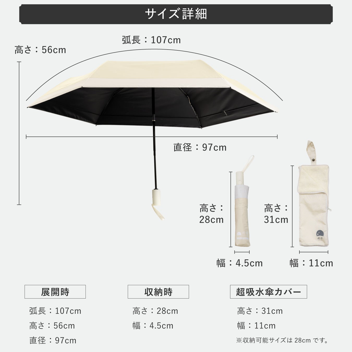 サイズ:展開時直径97cm、収納時長さ28cm