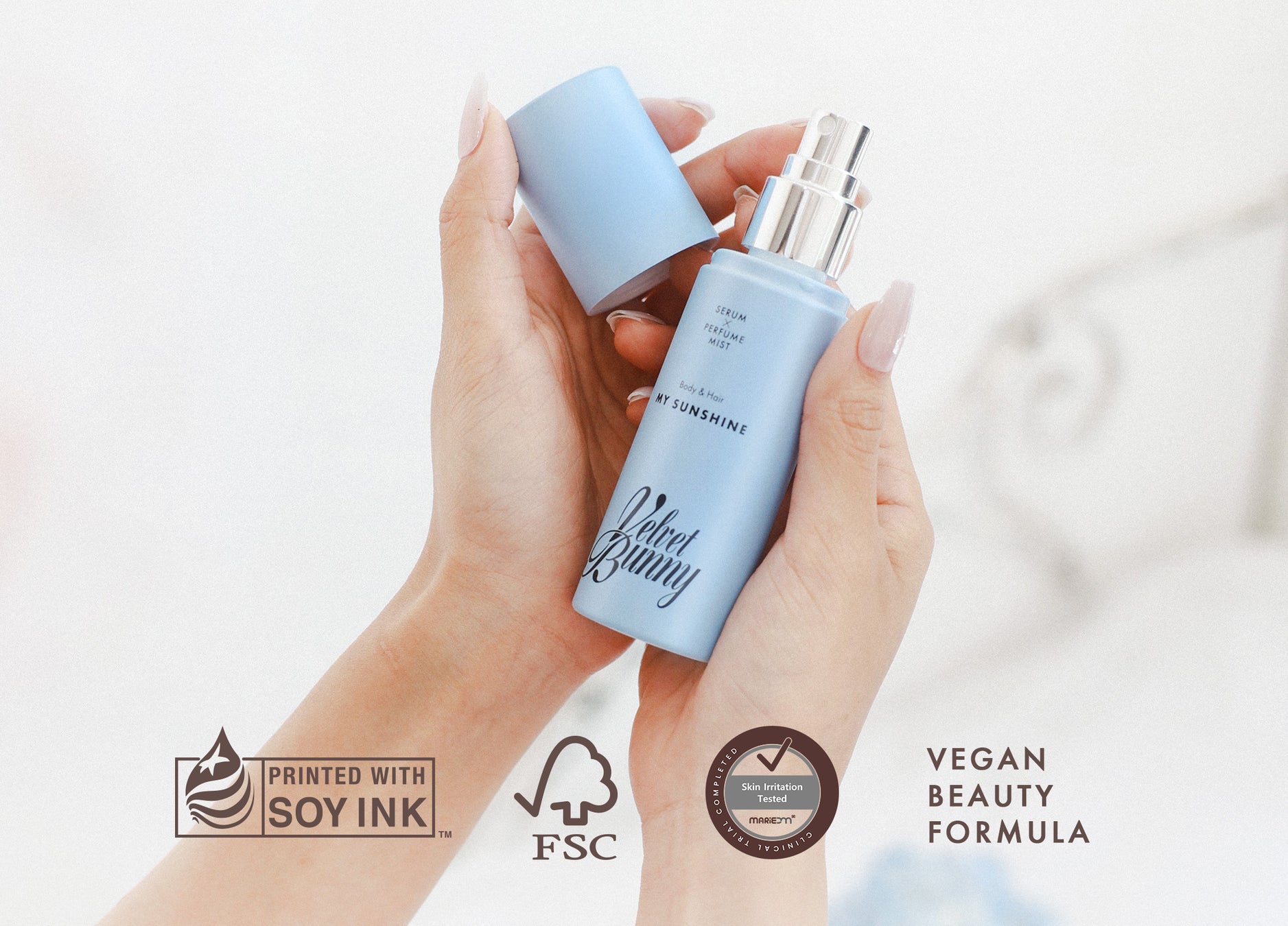 Velvet Bunnyは100%ヴィーガンフォーミュラで開発された、動物実験を一切行わないクルエルティフリー製品です。FSC認証パッケージと大豆インクを使用したサステナブルなパッケージで環境保護にも貢献しています。特に、イギリスのCPL Aromaと共同開発した製品は、天然香料とビタミン成分を配合し、肌にやさしく溶け込むような心地よい香りを実現しました。